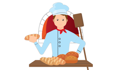 Look at this picture. The man in it _________ a baker. He bakes bread.