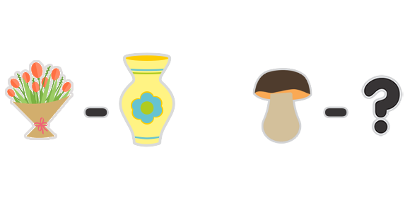Подумай, как связаны между собой эти предметы. Найди картинку, которая так же связана с грибом.