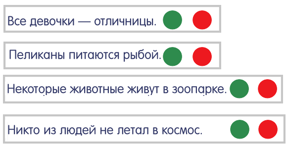 Определи, какое высказывание верное, а какое ложное. Если утверждение верно, нажимай на зелёный круг, если ложно - на красный.