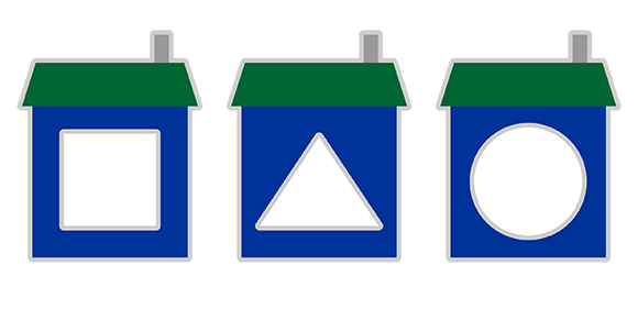 Фигурки вышли погулять. Но вот пошёл дождь и им нужно быстро бежать домой. Помоги фигуркам найти их домики.