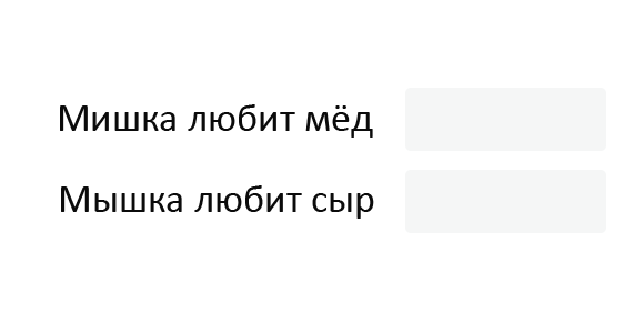 Прочитай и перетащи правильную транскрипцию слов мишка и мышка в конец предложения в соответствующие рамочки.