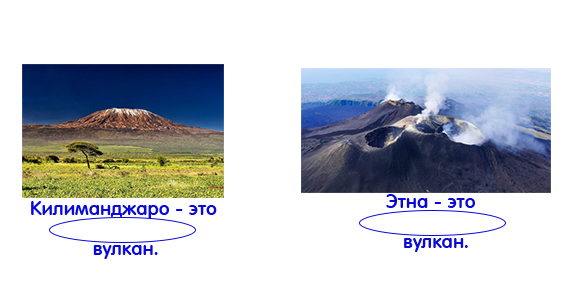 Нажимая на выделенные красным цветом слова, определи какой из вулканов действующий, спящий или потухший.