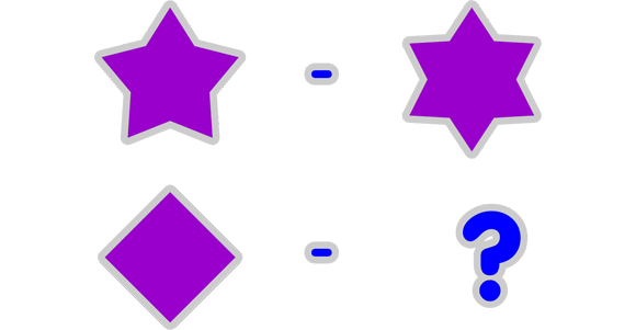 Посмотри, как изменяются фигуры в первой паре. Подбери недостающую картинку так, чтоб фигуры изменялись так же.