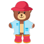 I’m wearing a blue coat, I have got a red hat and red boots.