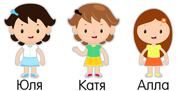 Каждая из 3-х девочек Катя, Юля и Алла играли с одной из игрушек: медвежонком, зайчонком, слоненком. Катя не играла с зайчиком. Юля не играла ни с зайчиком, ни с медвежонком. Кто с какой игрушкой играл? Перетащи игрушки к девочкам.
