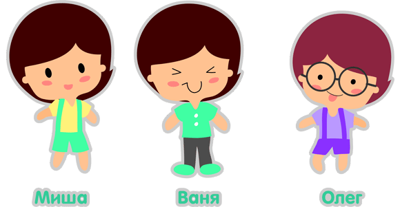 Кто из детей каким видом спорта занимается? Известно, что Ваня не любит футбол и не умеет плавать, а Олег не занимается плаванием. Перетащи к каждому мальчику необходимые предметы.