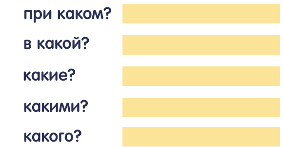 Перетащи к каждому вопросу прилагательное, которое отвечает на него.