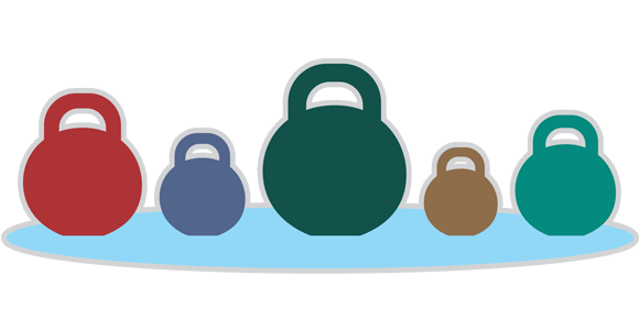 Пронумеруй гири от маленькой до большой.
