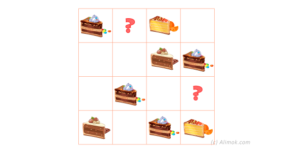 Выбери кусок торта, который должен стоять на месте вопросительных знаков?