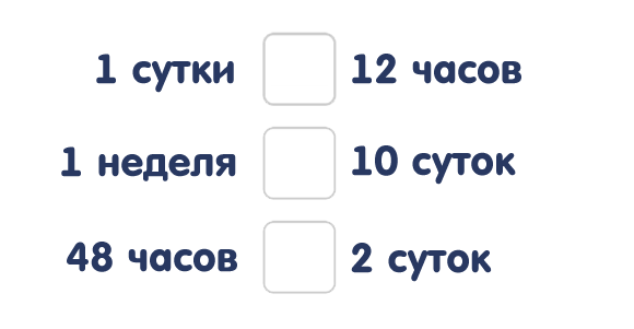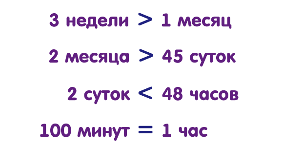 основными единицами измерения времени. Он детально разберёт сколько секунд в минуте, а сколько минут в часе. Или из скольких минут состоит полтора часа. Вместе с Alimok он расставит единицы измерения времени в таблице в порядке возрастания, начиная с секунд и заканчивая веками. Ваш ребенок будет сравнивать единицы времени и определять, какие знаки равенства следует расположить в тех или иных ячейках.